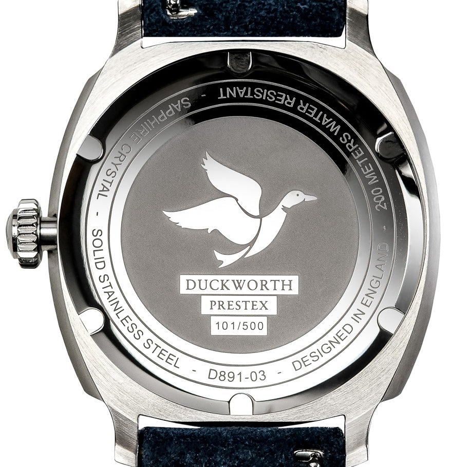 Duckworth Prestex Watch Verimatic Blue Fume Black Leather D891-03-A. Duckworth Prestex watches may sound like a new name, but it goes back a very long time in the history of watchmaking. Nearly 100 years in fact. Neil’s family firm, Prestons, was originally founded in 1869 in Bolton and by the 1920s it was making its own pocket watches under the Prestex name, which enjoyed tremendous success all over the world. Over the next few decades, Prestex produced a variety of timepieces including chronographs, pocket watches and some stunning dress watches.