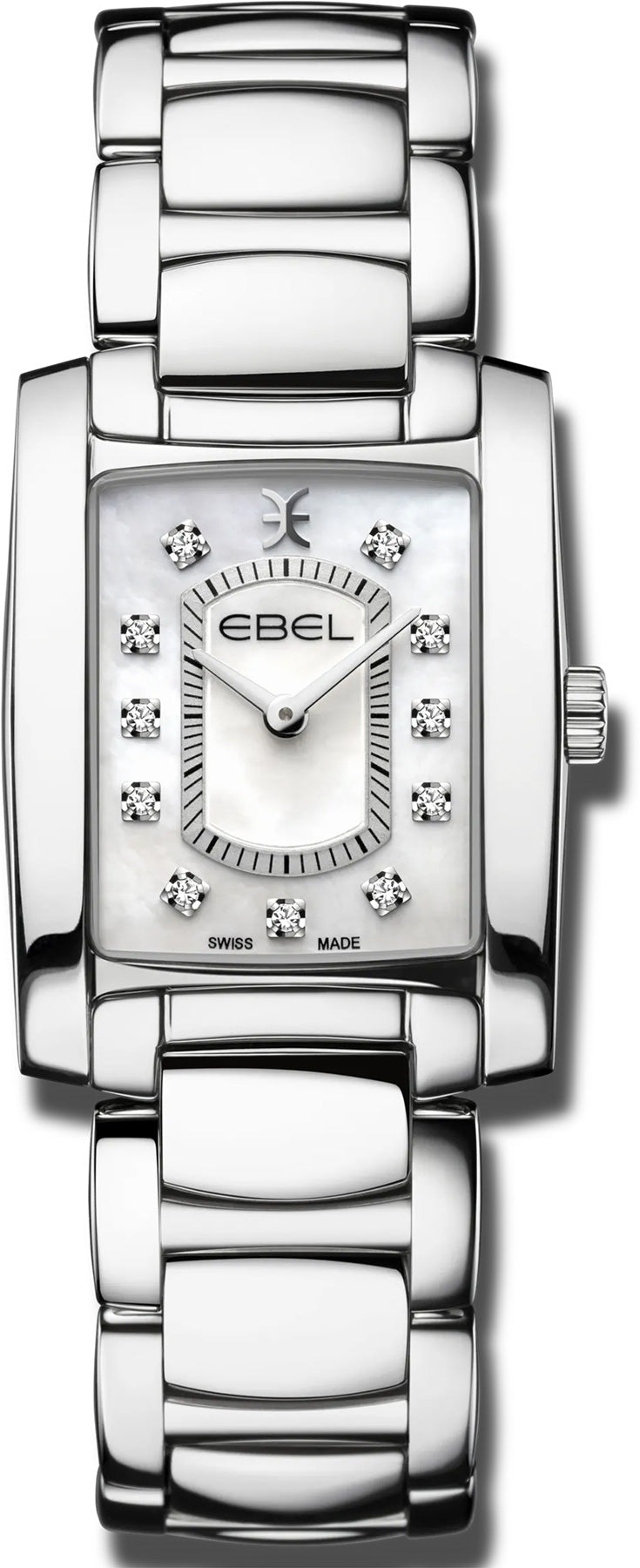 Ebel Watch Brasilia Ladies 1216462. A versatile watch infused with a fresh sense of glamour and finesse. Like todays woman, Ebel watches Brasilia is stylish. Spontaneous. The geometric shape of its dial is softened by a contoured case and curved bracelet links. A modern, youthful approach to everyday sophistication.