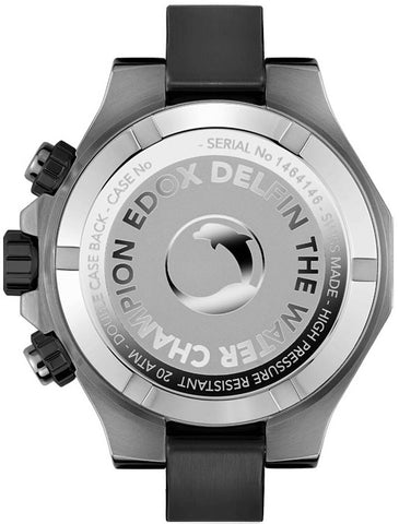 Edox Watch Delfin The Original Chronograph Mens 10113 37GNCA NGIN. Assembled by master watch makers, engineered for champions, for more than 130 years, Edox watches have combined ultimate precision with ingenious solutions, even for the most demanding activities: be it above or below the water surface, in the eternal ice or even on glowing desert sand, any timing instrument from Edox carrying the legendary hourglass logo will meet even the highest demands of its owner.