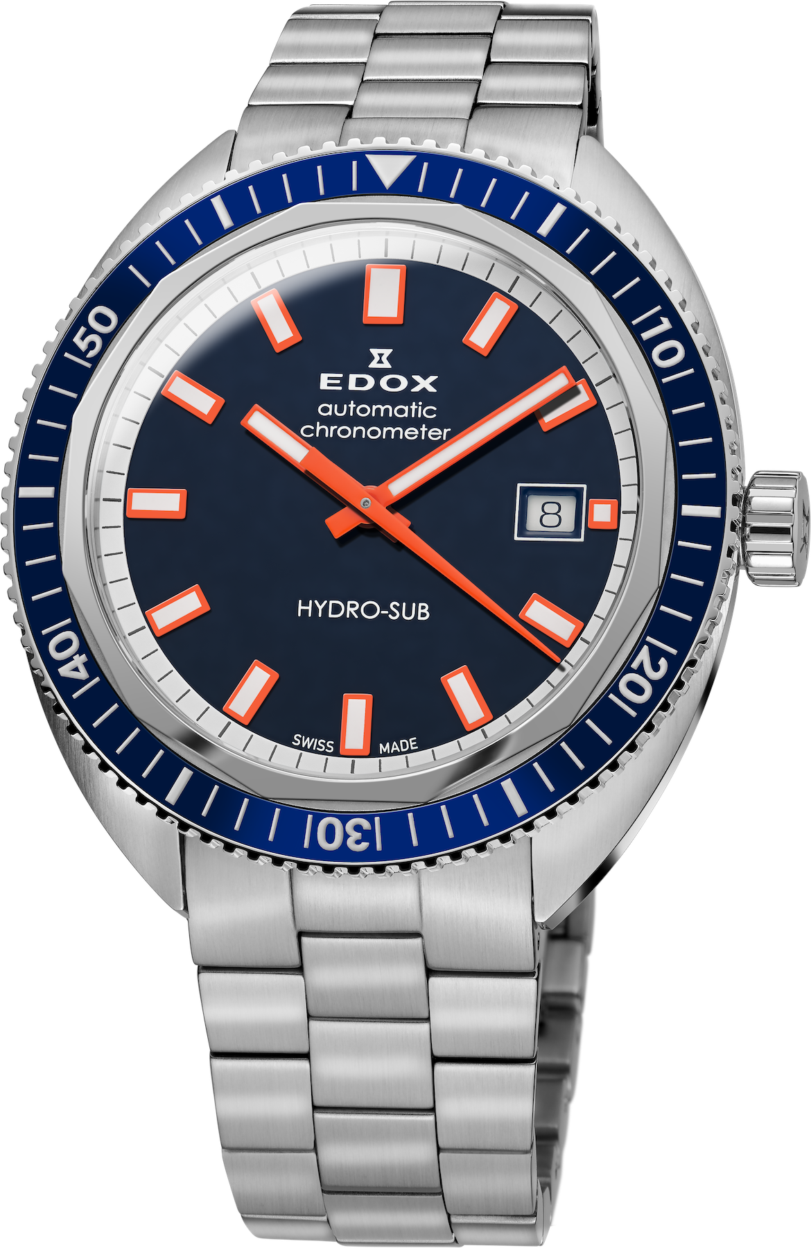 Edox Watch Hydro-Sub 1965 Limited Edition 80128 3BUM BUIO. The Edox Hydro-Sub was first presented in 1965 and was already water-resistant to at least 300 metres. At that time, the Swiss watch brand was considered the “Water Champion of the watch industry. Both technically and aesthetically, the new Edox Hydro-Sub reflects the timelessly cool look of an Edox diving watch from the 1960s. The most important details of the original have been retained and perfected.