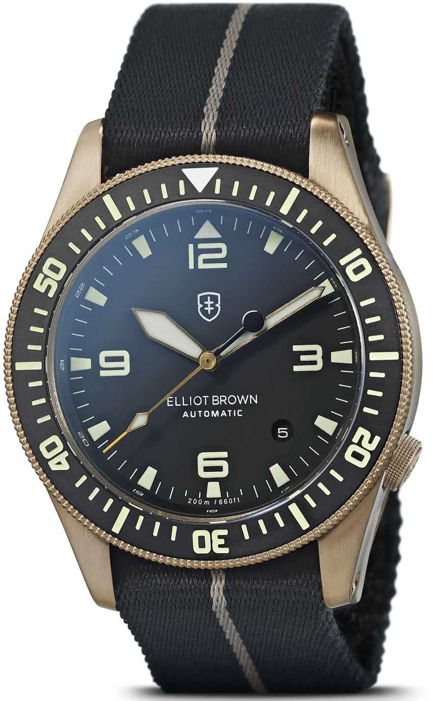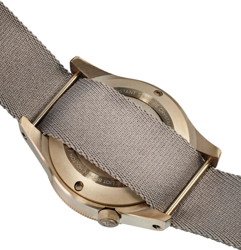 Elliot Brown Watch Holton Automatic 101-A12-N18. This Holton Automatic is something special. A stunning brushed bronze PVD 316L stainless case mounted on the most technical slice of super soft, durable webbing with its low profile patented buckle. Few watches are blessed with this level of natural in-built style yet it's no look at me fancy pants either.