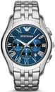 Emporio Armani Watch Classic Chronograph Mens. The power house Emporio Armani is an upscale label designed for young thinking adults. There are numerous wonderful things about the Emporio Armani watches as Emporio Armani represents a world known brand, as this brand is a symbol of style, quality and fashion. Arrive on time with this classic watch from Emporio Armani. The stainless steel case features a mother of pearl dial with roman numeral hour markers and a date window for added functionality. The polished stainless steel bracelet completes the look.