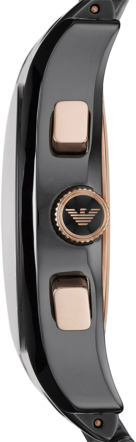 Emporio Armani Watch Ceramic Mens AR1410. The power house Emporio Armani is an upscale label designed for young thinking adults. There are numerous wonderful things about the Emporio Armani watches as Emporio Armani represents a world known brand, as this brand is a symbol of style, quality and fashion. Arrive on time with this classic watch from Emporio Armani.