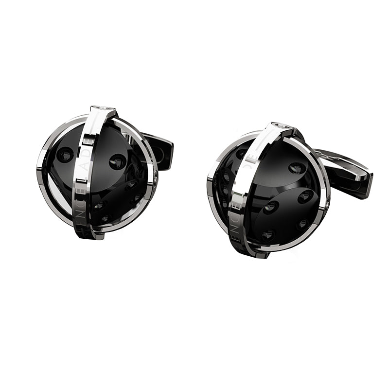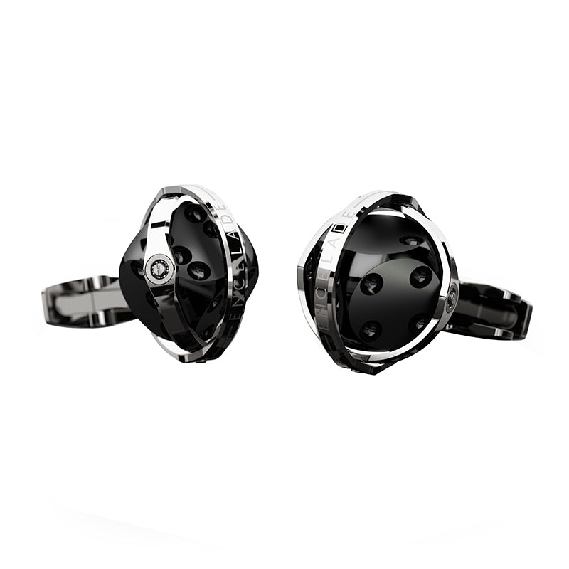 Encelade 1789 Dice Cufflinks 1795. The cuff links from the Dice collection have an entirely gyroscopic movement 360 rotation patented worldwide. Built with a minimum of 34 different components including 8 ball bearings used by the armament industry, these cuff links are inspired from the field of high precision mechanics. The concept of dice was carefully selected. It reminds us that all paths remain open to us as we go through life.