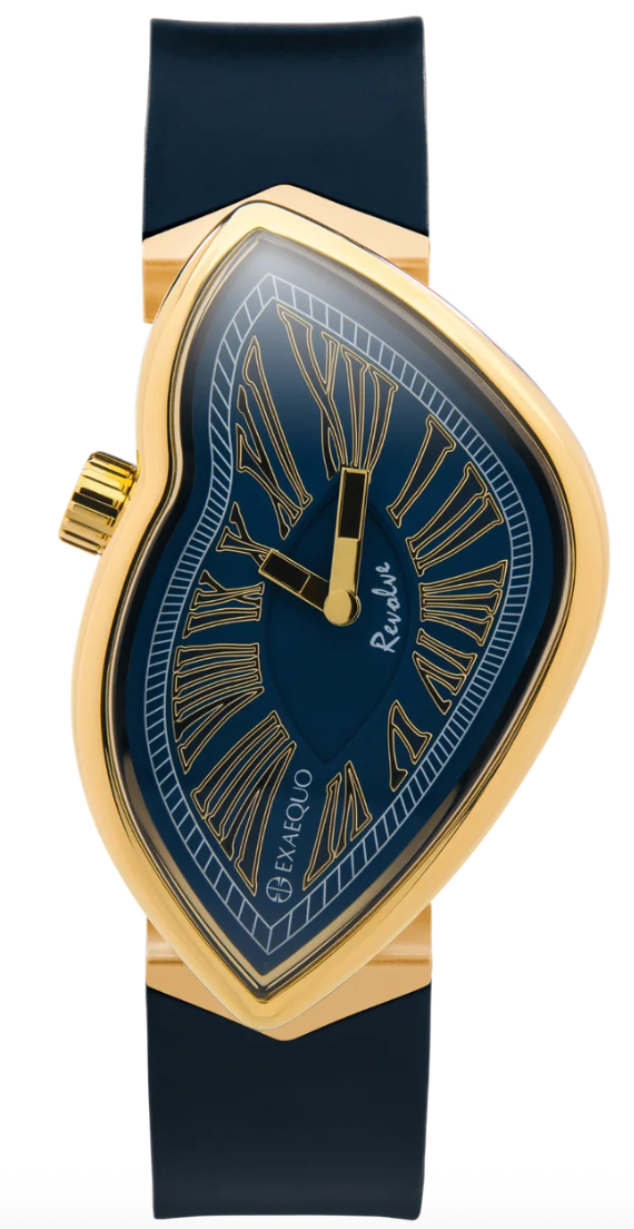 Exaequo Revolve Melting IP Yellow Gold Blue Dial Watch EX0032.0004. Directly inspired by the aesthetics of the surrealist movement and the concept of fluid and unconventional time, the melting watches continue to fascinate with the rebirth of Exaequo.