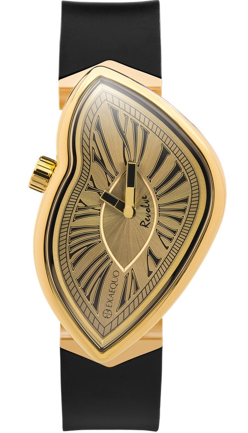 Exaequo Revolve Melting IP Yellow Gold Yellow Gold Dial Watch EX0032.0003. Directly inspired by the aesthetics of the surrealist movement and the concept of fluid and unconventional time, the melting watches continue to fascinate with the rebirth of Exaequo.