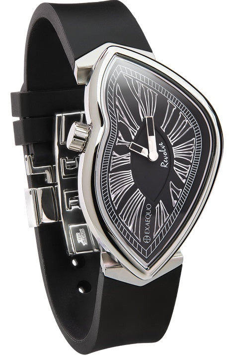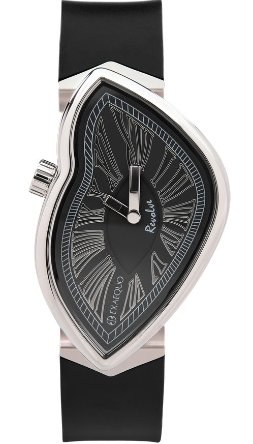 Exaequo Revolve Melting SS Black Dial Watch EX0031.0001. Directly inspired by the aesthetics of the surrealist movement and the concept of fluid and unconventional time, the melting watches continue to fascinate with the rebirth of Exaequo.