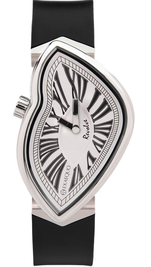 Exaequo Revolve Melting SS White Dial Watch EX0031.0002. Directly inspired by the aesthetics of the surrealist movement and the concept of fluid and unconventional time, the melting watches continue to fascinate with the rebirth of Exaequo.