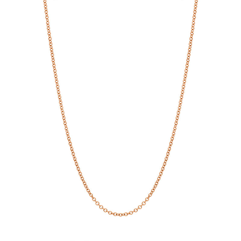 The 18ct Rose Gold trace chain is 50cm long with a jump ring at 45cm so it can be worn shorter. It is embellished with a Faberge tag and is securely closed with a trigger clasp. Pair with any one of our Faberge charms and create a unique necklace.