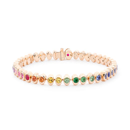 Faberge Colours of Love Cosmic Curve 18ct Rose Gold Rainbow Gemstone Tennis Bracelet - 3502 (FBR-758)