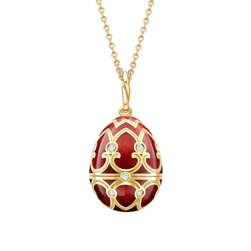 Faberge Heritage Yellow Gold Diamond Red Guilloche Enamel Ladybird Surprise Locket - 1151FP3571 (FBR-846)