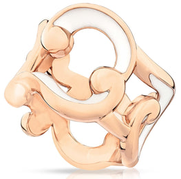 The Faberge Rococo White Enamel Rose Gold Wide Ring is a stunning ring featuring 18 carat rose gold with white cold enamel detailing.