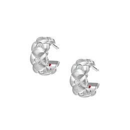 Faberge Treillage 18ct Brushed White Gold Diamond Hoop Earrings - 1716EA3082 (FBR-614)