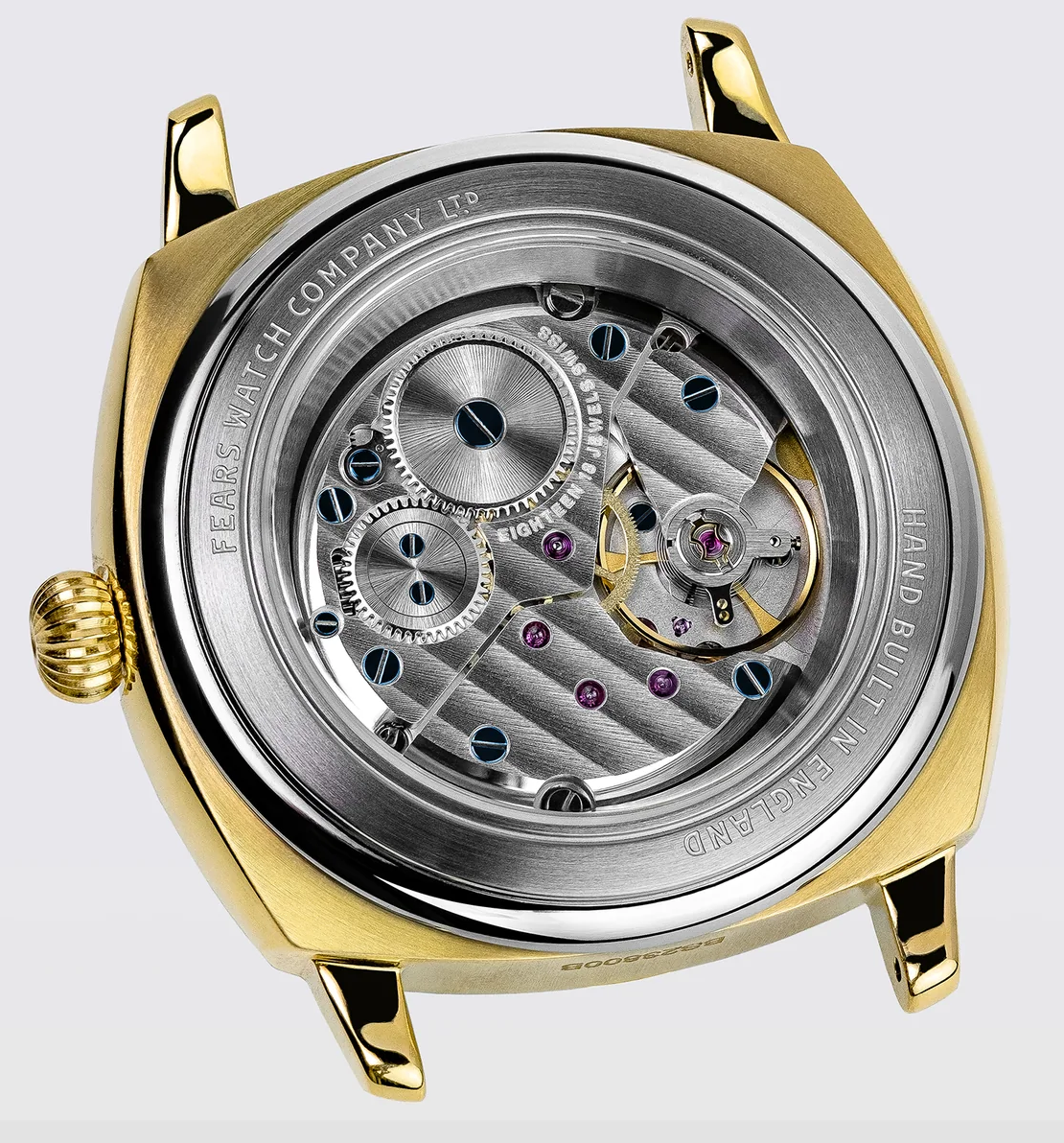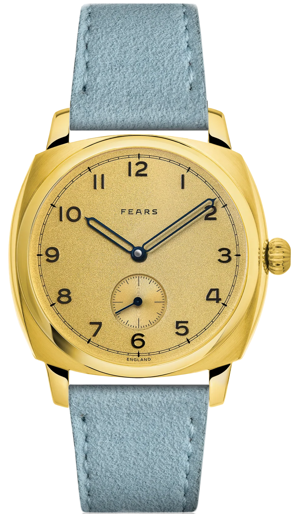 This evolution exudes opulence with a rich 22ct yellow gold plated case perfectly complemented by a frosted 18ct yellow gold champagne dial (the gold-on-gold theme inspired by a 1973 watch from the Fears Archive). This limited production piece comes with two straps that can give either a classic 1970s look or a more contemporary feel.