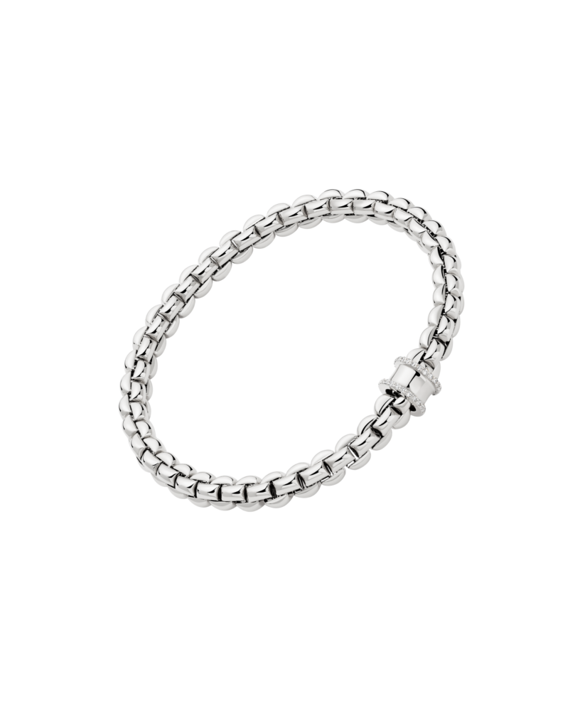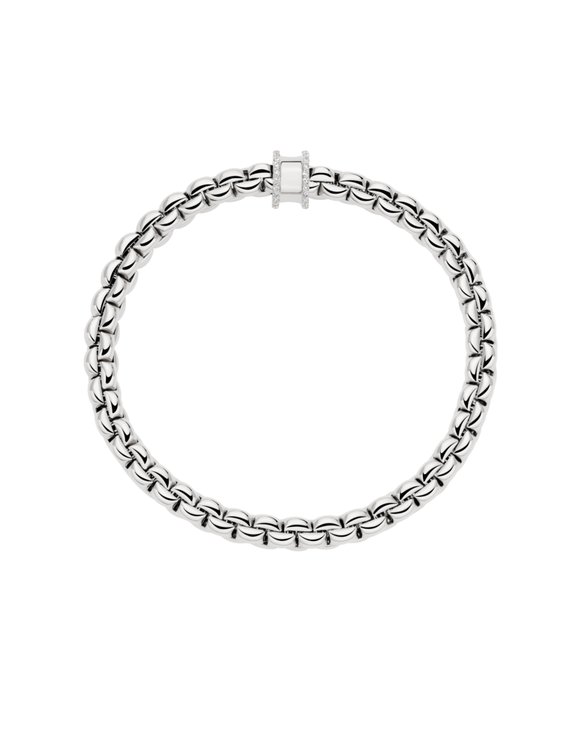 Crafted with 18ct white gold and featuring a 0.17ct diamond pavé, the Fope Flex'it Bracelet is a stunning piece of jewellery that adds elegance and sophistication to any outfit.