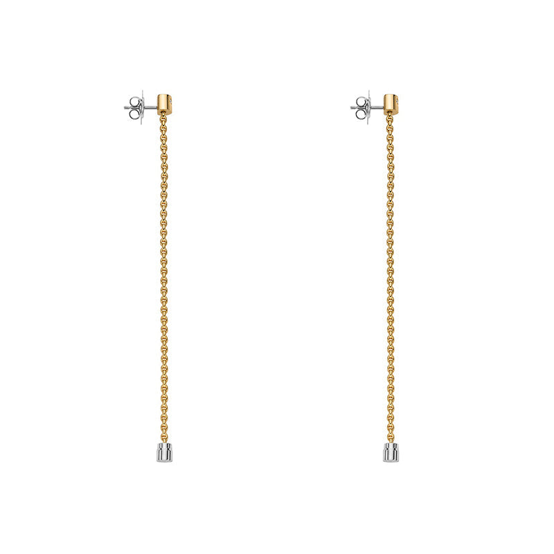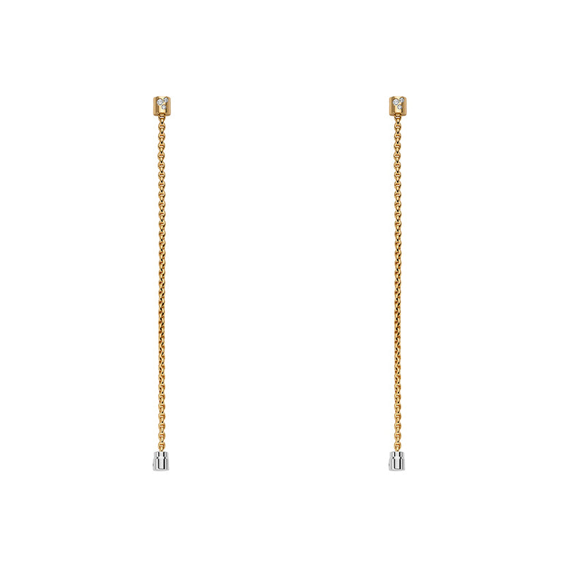 These stunning earrings are part of the Fope Aria collection. The finely crafted chain is entirely made of 18ct gold and they feature diamonds totalling 0.09ct. The earrings have stud fasteners and can be worn as long pendant earrings or close to create hoops.