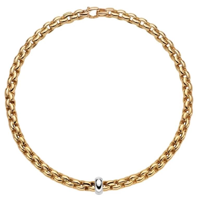 This stunning necklace is part of the Fope Eka collection and features a finely crafted 18ct yellow gold chain. The necklace features a single, polished 18ct white gold rondelle. This piece is completed with a simple lobster clasp for secure and convenient wear.