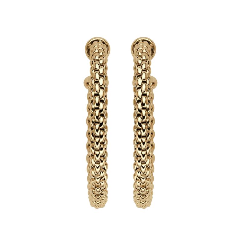 Part of the Essentials collection, these hoop earrings are exquisitely crafted from 18ct Yellow gold. Finished by hand, this stunning design features the recognisable Fope rope that is seen featured throughout the iconic collection. Completed with secure butterfly back fittings.