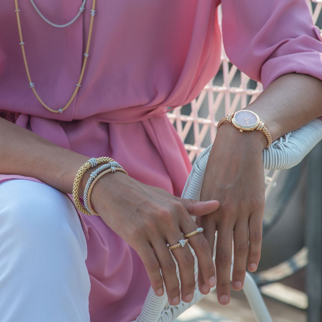 Fope jewellery looks stunning when layered with other pieces from the collection. Mix Rose, White and Yellow gold pieces for that on-trend look. You can also find matching items within the Fope collections on our website.