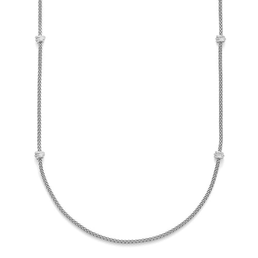 Part of the Flex'It Prima collection, this stunning gold necklace features the signature Fope woven chain. Expertly crafted from luxurious 18ct white gold and decorated with white gold rondelles set with a total 1.24ct of glittering brilliant cut diamonds. Size 80cm.