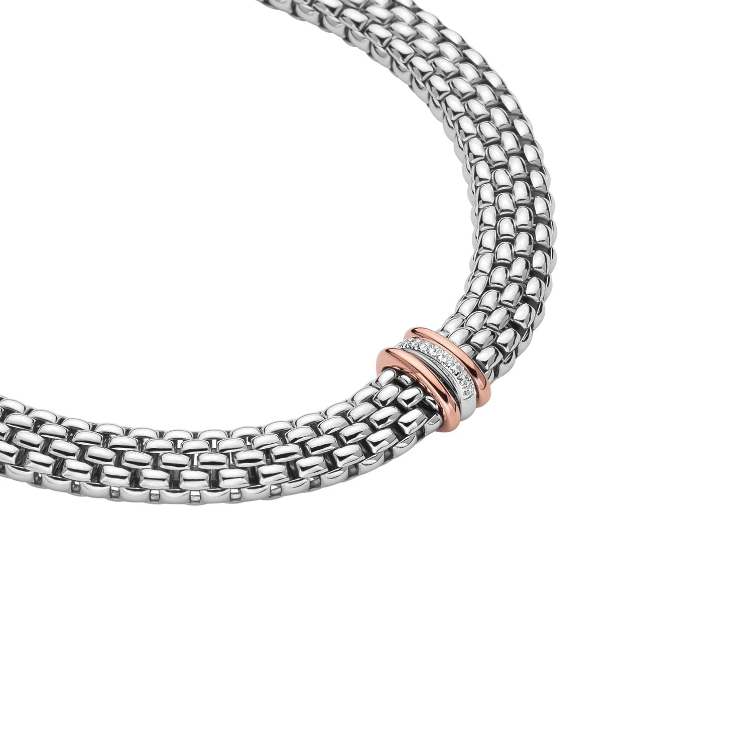 Fope Panorama 18ct White Gold 0.08ct Diamond Rose Gold Rondelle Necklace - 58712CX_BB_B_RBR_042 (FPE-1362/42)