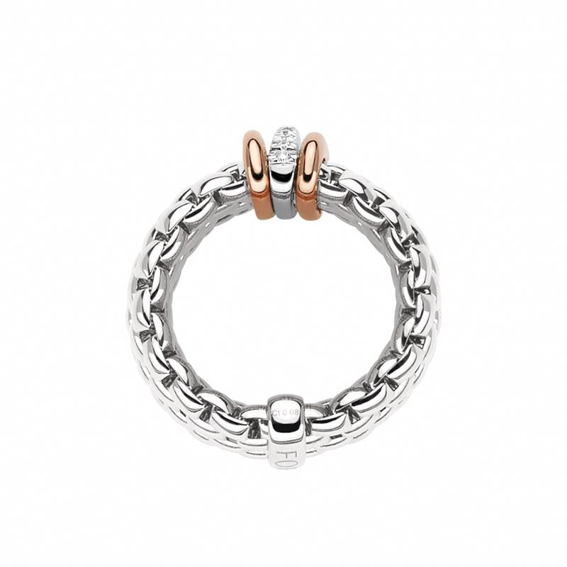 Fope Panorama 18ct White Gold 0.08ct Diamond Rose Gold Rondelle Ring, AN587 BBR.