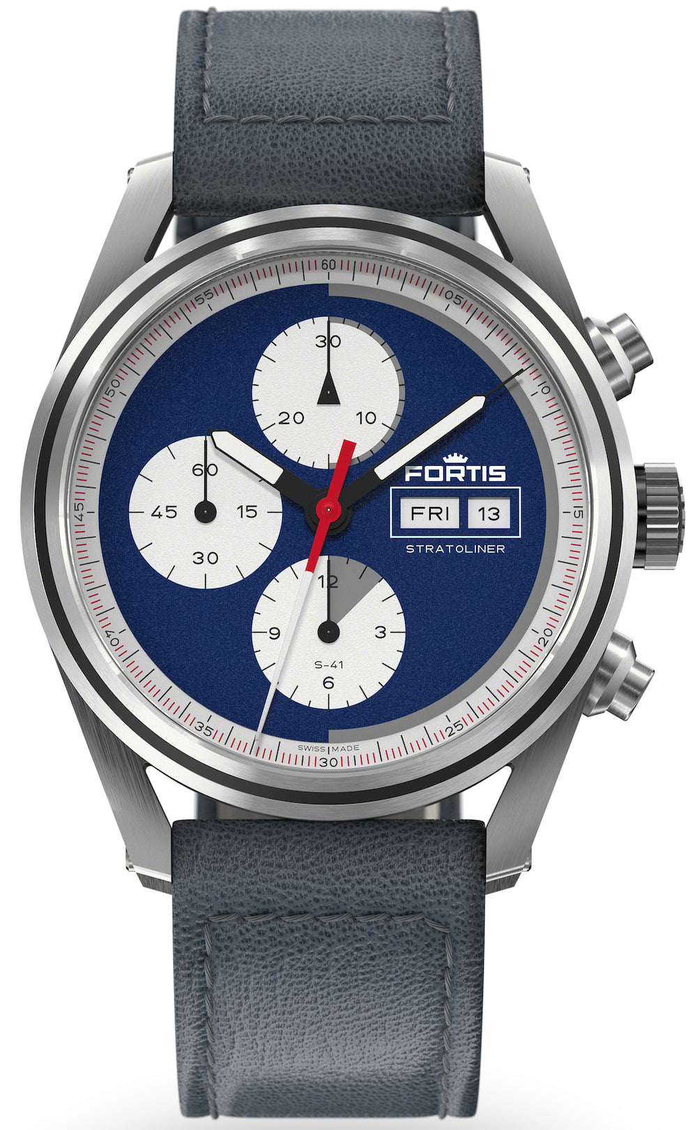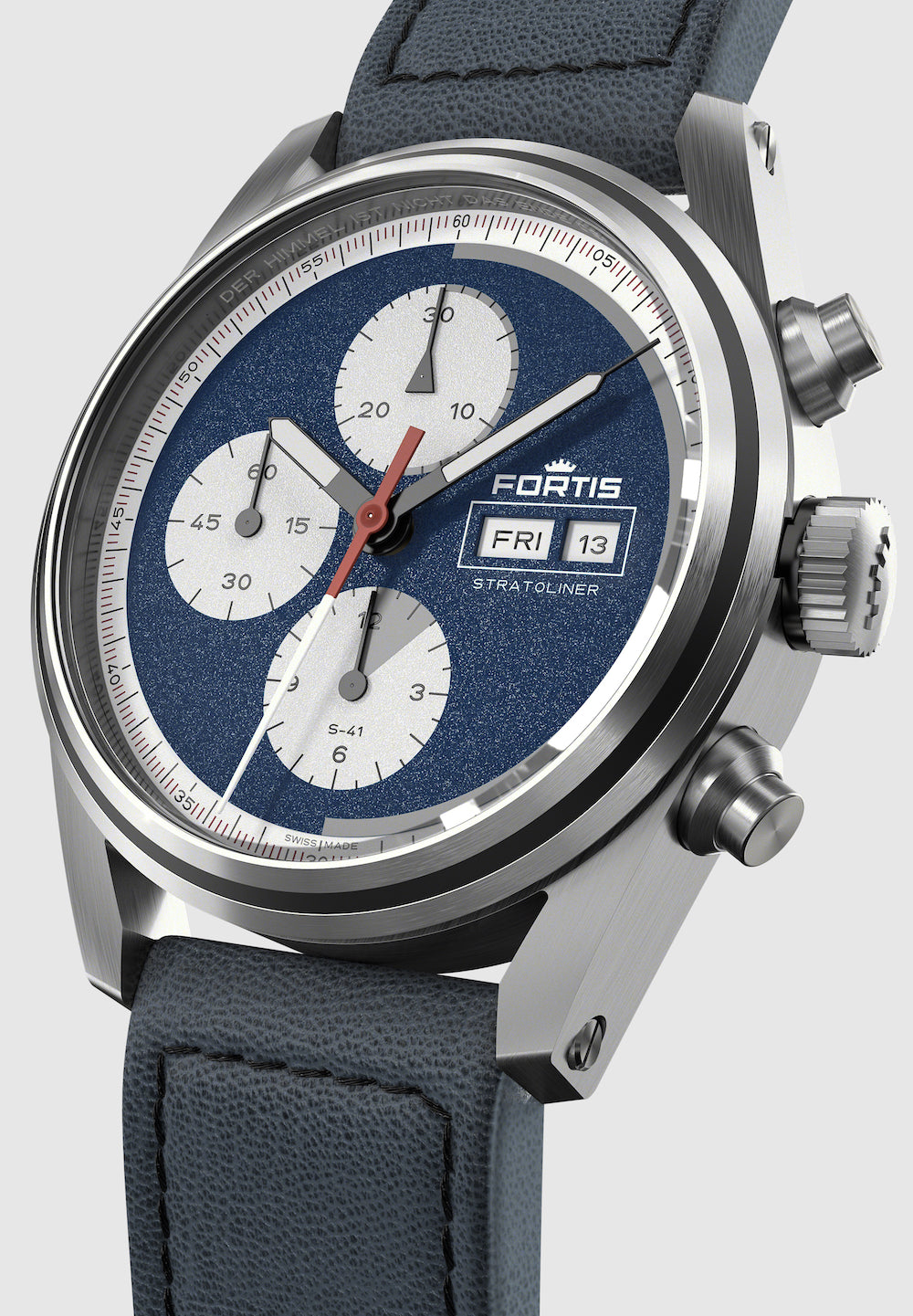 Fortis Watch Stratoliner Blue Japan Aviator Strap F2340017. Adding to many firsts in the history of Fortis, the redefined Stratoliner collection features the first manufacture calibre which was custom built for space and tested in the Stratosphere. Inspired by the persistence of great visionaries, the Stratoliner is both tribute and motivation, it is the tool for those inventing tomorrow. It is the tool to go beyond the impossible.