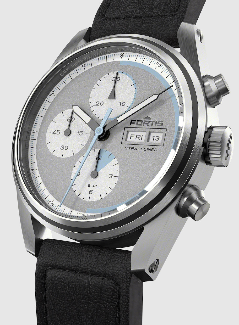 Fortis Watch Stratoliner Cool Grey Aviator Strap F2340015. Adding to many firsts in the history of Fortis, the redefined Stratoliner Collection features the first manufacture calibre which was custom built for space and tested in the Stratosphere. Inspired by the persistence of great visionaries, the Stratoliner is both tribute and motivation, it is the tool for those inventing tomorrow. It is the tool to go beyond the impossible.