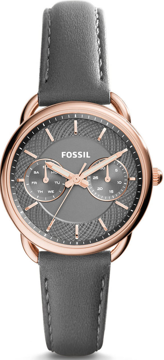 Fossil Watch Tailor ES3913. Everyone's leading lady gets dressed up for the season. Mirroring the gradient colors and twinkling stars across a winter sky, a dark gray dial and rose accented case gives this special timepiece a hint of sparkle.