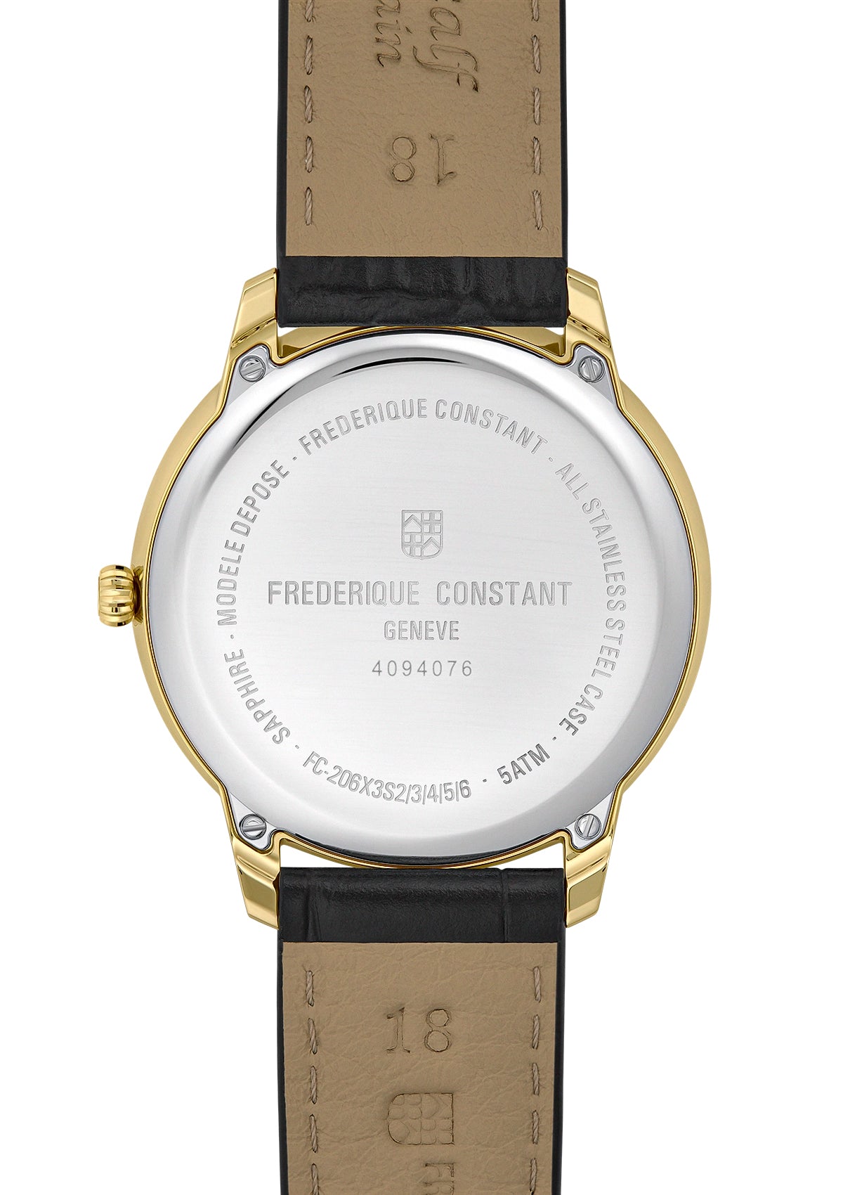 Frederique Constant Moneta Classic Moonphase Watch FC-206S3S5. The Classics Moneta Moonphase is distinguished by its quartz movement and elegant 37 mm case. It features a delicate moonphase at 6 o'clock and its name is inspired by the edge of a coin, subtly echoed on its inner bezel.