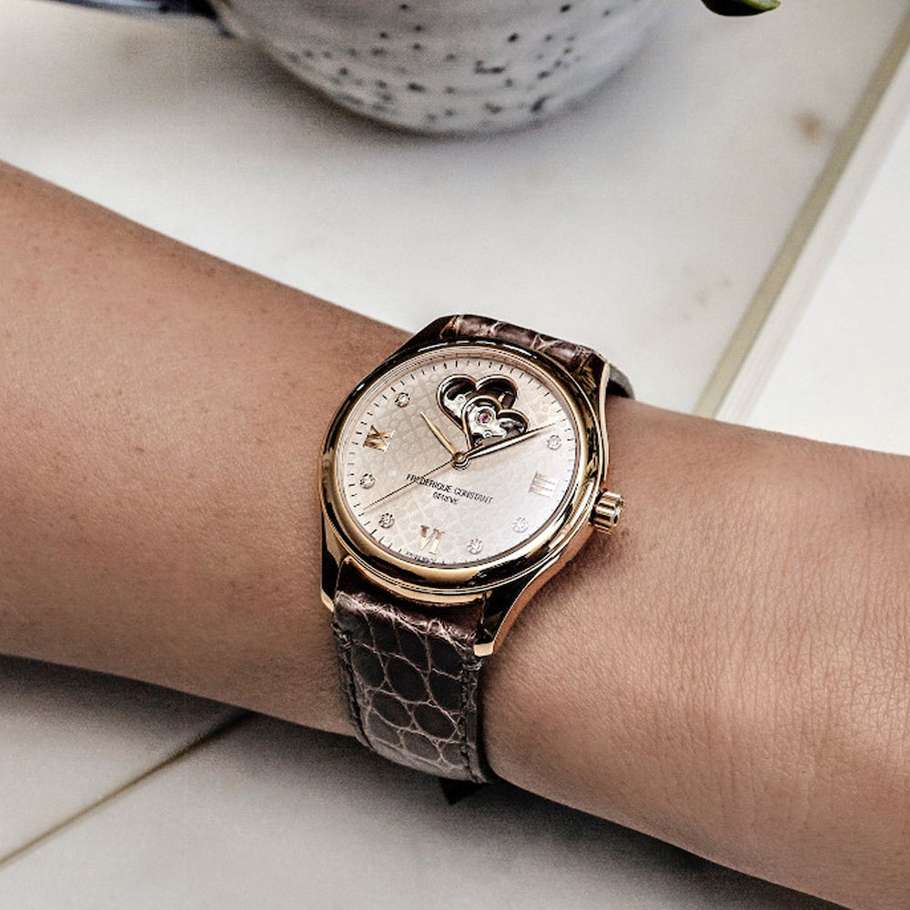 Frederique Constant Watch Double Heart Ladies FC-310LGDHB3B4. Frederique Constant is known for its classical and refined timepieces of exceptional value. Clean lines and a classic appearance are the hallmarks of every watch. Other attributes include reliability and durability.