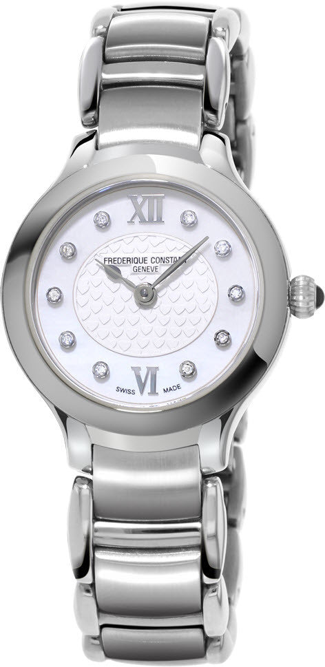 .Frederique Constant Watch Junior. This beautifully lightweight stainless steel quartz wristwatch from the Classics range, is a lavishly desirable timepiece which opts for a minimalistic dial for clear and easy time reading, combined with a relaxed and natural clarity. The Swiss made quartz movement is water resistant for up to 20M with fixed bezel and a push/pull crown, finished on a matching stainless steel polished bracelet with foldable clasp for practical ease. The silvered mother of pearl dial includes texturing to the centre circle of this Frederique Constant timepiece, a highly technical engine turning process called a heart guilloche which illuminates 10 hour markers amongst the two large Roman numeral indexes which decorate the perimeters of the watch with a ball bearing-style beading, a versatile Frederique Constant wristwatch which adapts well to both casual wear and evening attire. Supplier model number FC-200WHD1ER6B