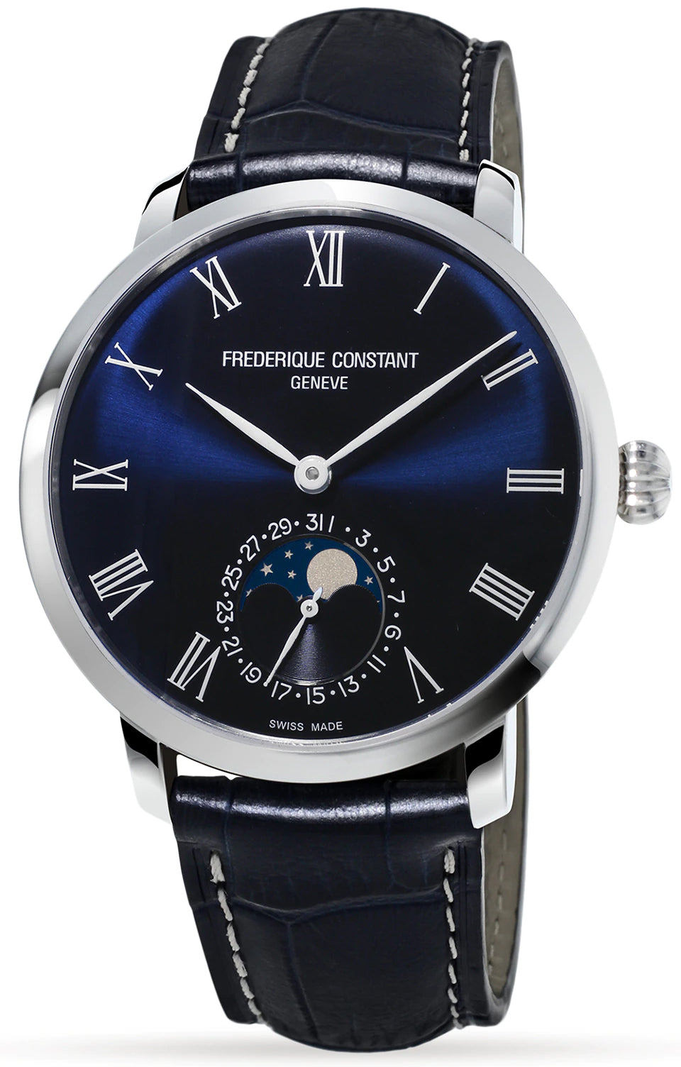 Frederique Constant Watch Slimline Moonphase Mens FC-705NR4S6. Since 1988, Frederique Constant has been extracting the best of Swiss traditional historic watchmaking, in order to create “accessible luxury watches. With the new Slimline Automatic range, Frederique Constant demonstrates once again its profound attachment to its DNA and its desire to offer beautiful timepieces at affordable prices.