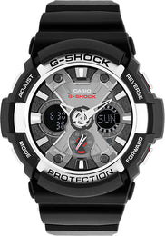 G-Shock Watch Alarm Mens GA-200-1AER. The timepieces became equipped with various functionalities, which made them excellent for athletes, adventurers and military personnel. G-Shock watches feature atomic timekeeping, solar power generation, resistance to dust and cold.
