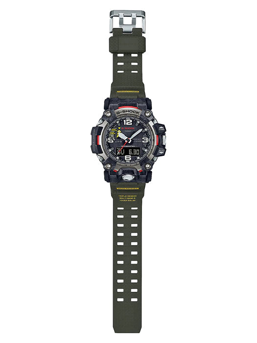 G-Shock Watch Carbon Mudmaster Mens GWG-2000-1A3ER. With the integration of a Carbon Core Guard these are now slimmer, lighter but much stronger than previous series, while the lugs, shock absorbers and internal casing are now integrated with carbon fibers which can be seen within each component creating a texture that is unique to every watch. The GWG-2000 also has a super strong solid steel bezel and crown, built to absorb extreme impacts as well as a built-in Compass, Altimeter, Barometer and Thermometer, perfect for getting you out of trouble in dangerous environments. With unbeatable mud resistance and patented gasket design, nothing can get inside the watch, keeping this versatile piece of equipment working when you need it most.