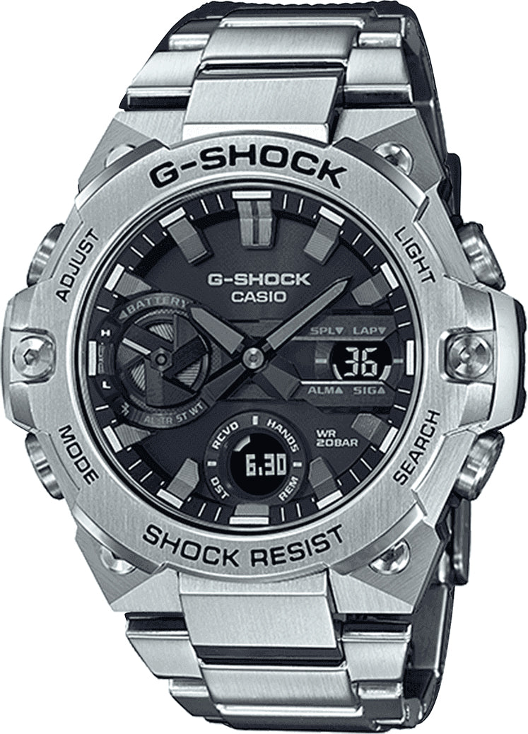 G-Shock Watch G-Steel Mens GST-B400D-1AER. G-Shock watches founder, Kikuo Ibe is an engineer who created the first shock resistant watch. For the first time, a watch could be exposed to impact and vibrations without suffering harm. The timepieces became equipped with various functionalities, which made them excellent for athletes, adventurers and military personnel. G-Shock watches feature atomic timekeeping, solar power generation, resistance to dust and cold.