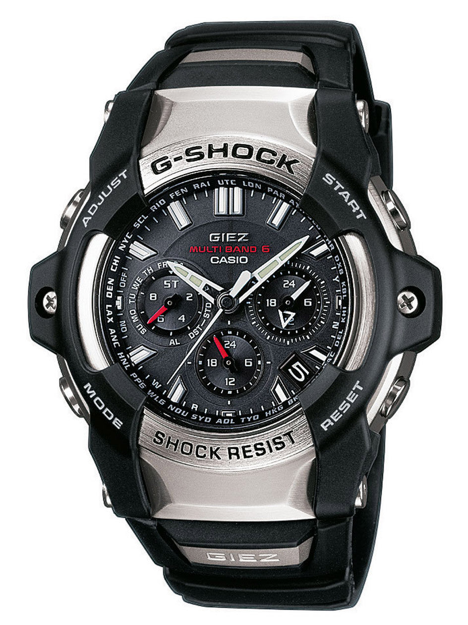 The watch receives radio signals, which guarantee its accuracy. In most countries, it is able to set itself automatically to summer and winter time. Additional functionalities include world time, automatic calendar, five alarms, a snooze option, date and weekday display.