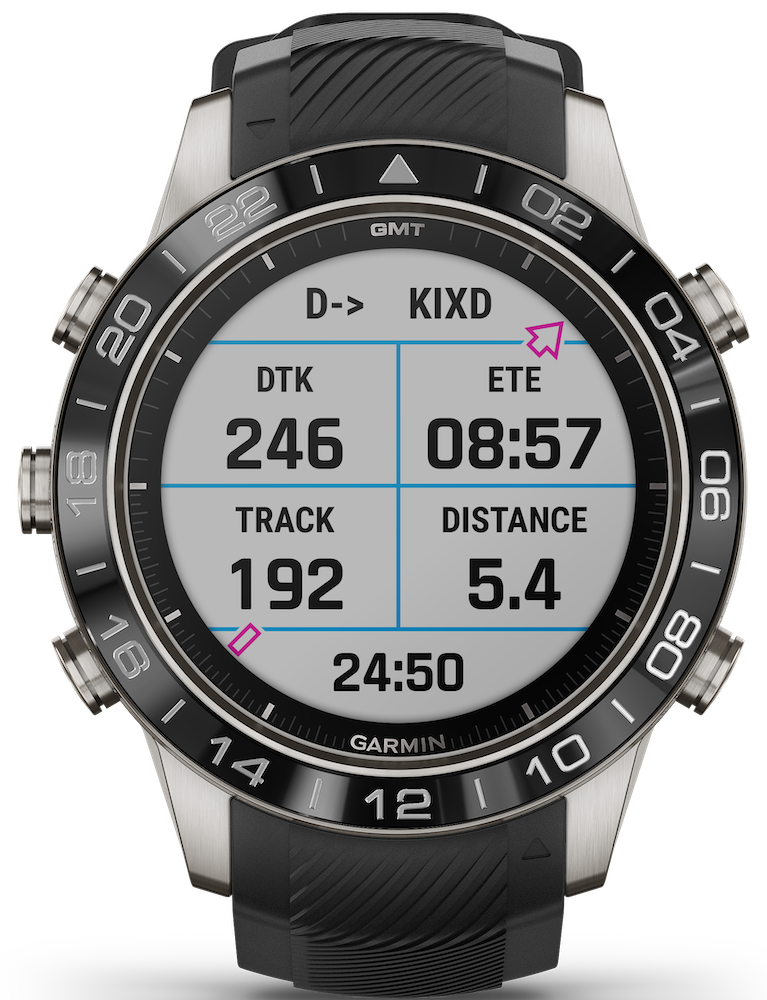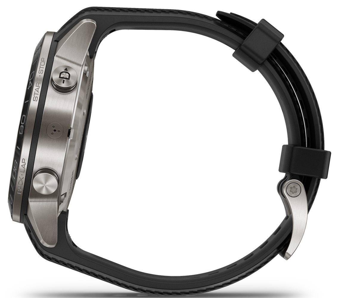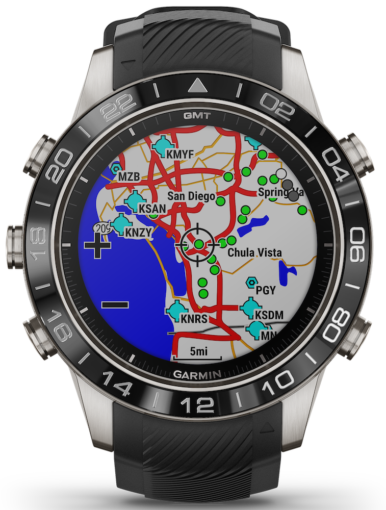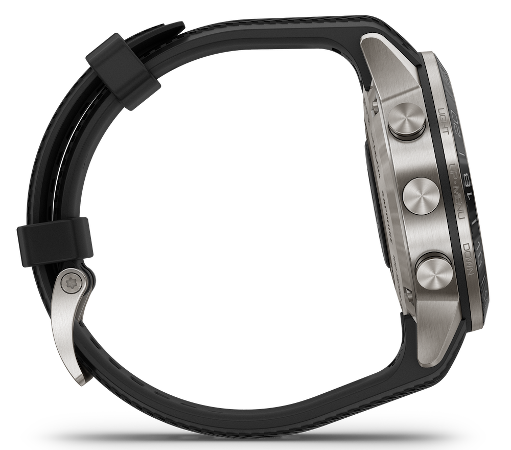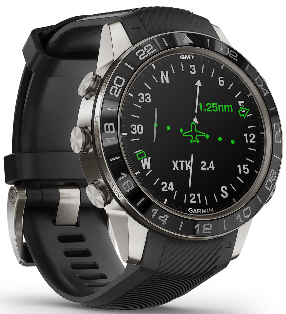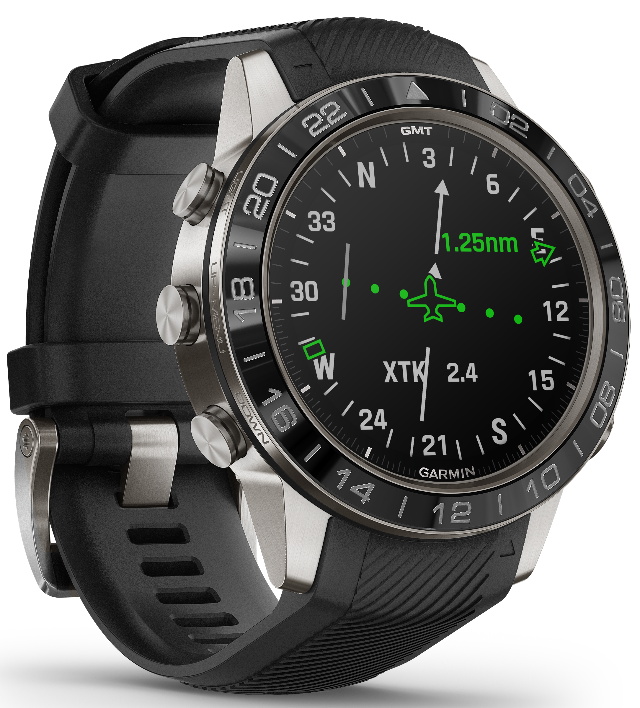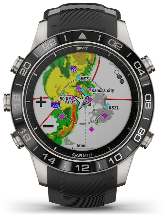 Take to the skies with the Garmin MARQ Aviator Performance Edition smartwatch, the ultimate flying companion preloaded with a worldwide aviation database, GPS navigation and a dynamic moving map. It’s luxury aesthetic and commanding functions immediately inspire you to take control of the pilot’s seat and thanks to the NEXRAD weather display, you can always feel confident knowing what lies ahead. It’s striking 46mm lightweight titanium case and black silicon strap make it effortless to wear while the mirror polished 24-hour GMT bezel and 2 additional time zones allow you to record your travels.