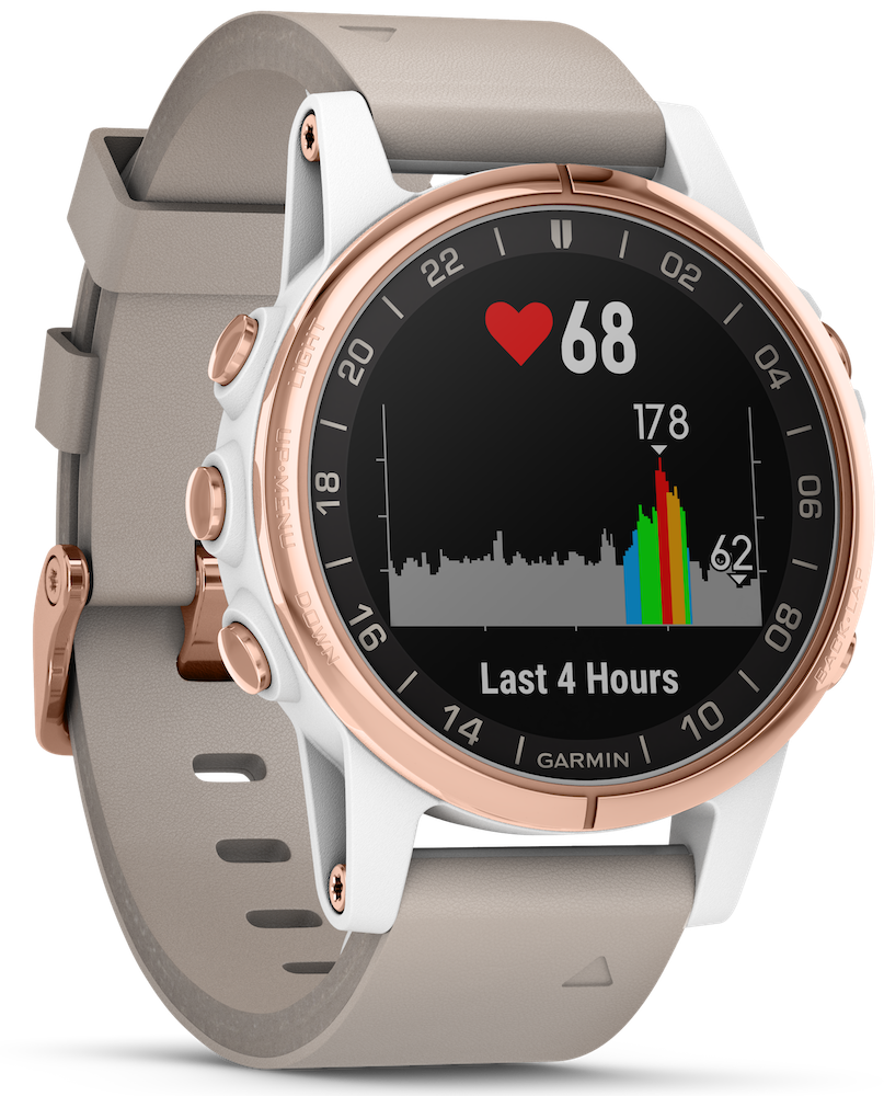 Sensors: GPS, GLONASS, Galileo, Garmin Elevate wrist heart rate monitor, Barometric altimeter, Compass, Gyroscope, Accelerometer, Thermometer,
