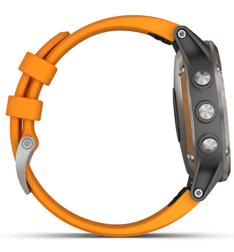 Garmin Watch Fenix 5 Plus Sapphire Titanium Orange Silicone Band