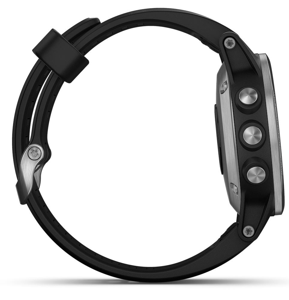 Workout in style with this stunning Garmin Fenix 5S Plus watch. This striking fitness smartwatch boasts a luxurious, compact design for those athletes and adventurers who want to monitor their activities without compromising on style. The sleek 42mm case is crafted from black PVD stainless steel and fibre reinforced polymer and paired with a sporty black rubber band.