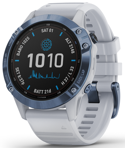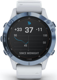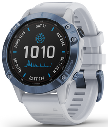 Garmin Watch Fenix 6 Pro Solar Mineral Blue With Whitestone Band. 010-02410-19.