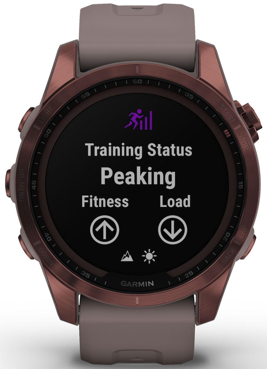 - Training, Planning & Analysis Features: HR zones, HR alerts, HR Calories, % HR max, %HRR, Recovery time, Auto Max HR, HRV Stress Test, HR Broadcast, Respiration Rate, GPS speed and distance, Customisable screens, Customisable activity profiles, Auto pause, Interval training, Advanced workouts, Downloadable training plans, Power Modes, Auto Lap, Manual lap, Configurable lap alerts, Heat and altitude acclimation, VO2 Max, Training Status, Training Load, Training Load Focus, Training effect (aerobic), Training effect (anaerobic), Primary Benefit, Improved Recovery Time, Daily Suggested Workouts, Customisable alerts, Audio prompts, Finish time, Virtual partner, Race an activity, Auto multisport activities, Multi-sport, Course Guidance, Garmin live segments, Strava live segments, Round Trip Course Creator, Trendline Popularity Routing, Touch and/or button lock, Hot keys, Auto scroll, Activity history on watch, Physio TrueUp