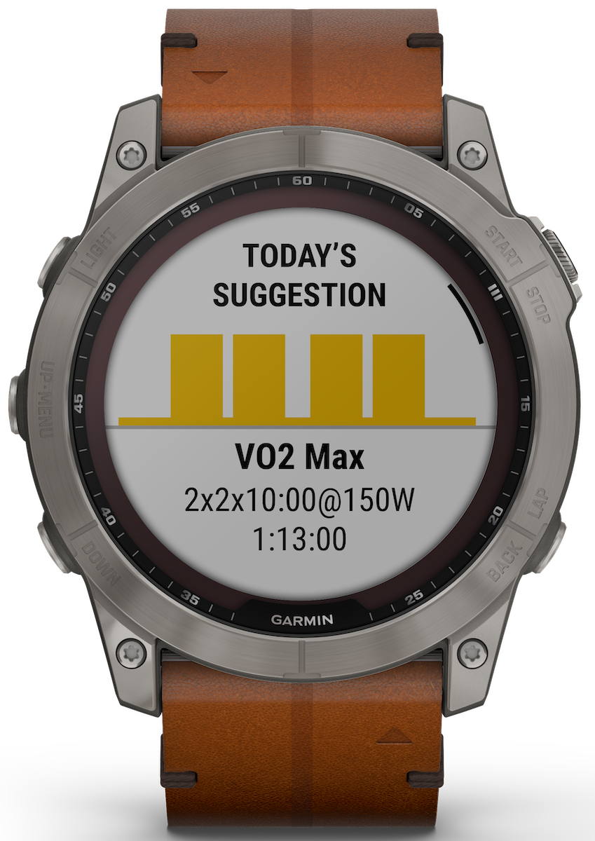 - Training, Planning & Analysis Features: HR zones, HR alerts, HR Calories, % HR max, %HRR, Recovery time, Auto Max HR, HRV Stress Test, HR Broadcast, Respiration Rate, GPS speed and distance, Customisable screens, Customisable activity profiles, Auto pause, Interval training, Advanced workouts, Downloadable training plans, Power Modes, Auto Lap, Manual lap, Configurable lap alerts, Heat and altitude acclimation, VO2 Max, Training Status, Training Load, Training Load Focus, Training effect (aerobic), Training effect (anaerobic), Primary Benefit, Improved Recovery Time, Daily Suggested Workouts, Customisable alerts, Audio prompts, Finish time, Virtual partner, Race an activity, Auto multisport activities, Multi-sport, Course Guidance, Garmin live segments, Strava live segments, Round Trip Course Creator, Trendline Popularity Routing, Touch and/or button lock, Hot keys, Auto scroll, Activity history on watch, Physio TrueUp