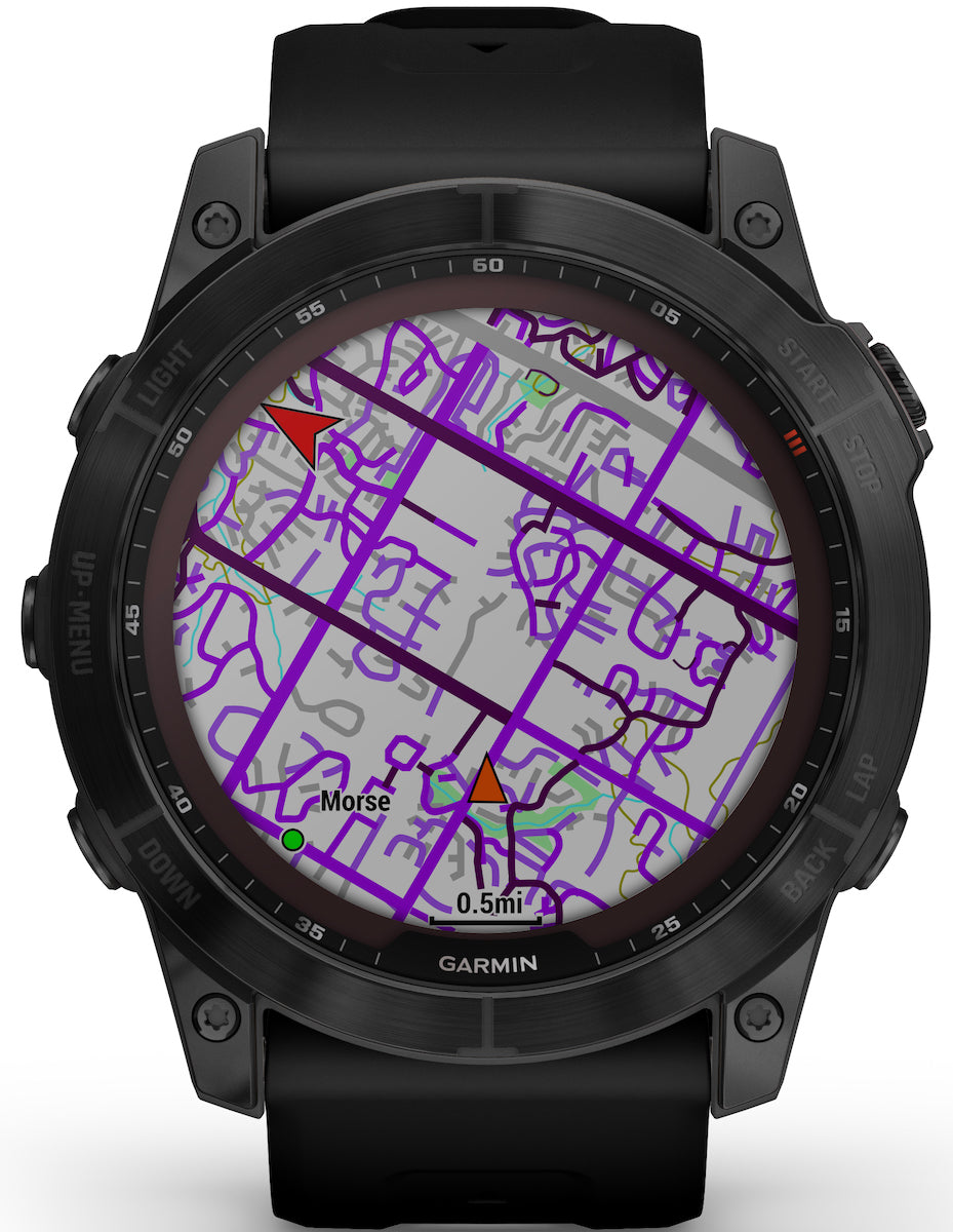 Installed on top of this Garmin Fenix 7X Black Titanium watch is a sapphire solar dial welcoming an impressive 300% solar gains over the Fenix 6 Solar and an unbeatable battery life of 37 days in smartwatch mode. This gives you almost limitless use of the mass of fitness, sports and exploration features including the wrist based heart rate monitor, Pulse Ox sensor, preloaded TopoActive Europe maps, performance metrics, multi-GNSS support and ABC sensors. It doesn’t matter what sport you’re into, whether its trail running, swimming, running, cycling, hiking, rowing, skiing, golfing, surfing, indoor climbing or mountain biking, we guarantee the Garmin Fenix 7X Sapphire Solar watch has a built-in sports app dedicated to it.