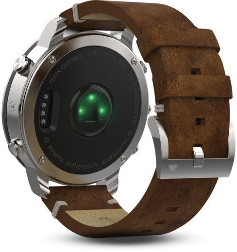 The striking Garmin Fenix Chronos watch collection combines the brand’s impressive fitness smartwatch technology with new premium materials including a durable metal case with an integrated metal EXO antenna for GPS navigation. Whether you take a run off the beaten path, a swim in the ocean or get lost on a golf course, the Fenix Chronos provides impressive tracking features combined with altimeter, barometer and compass functions.