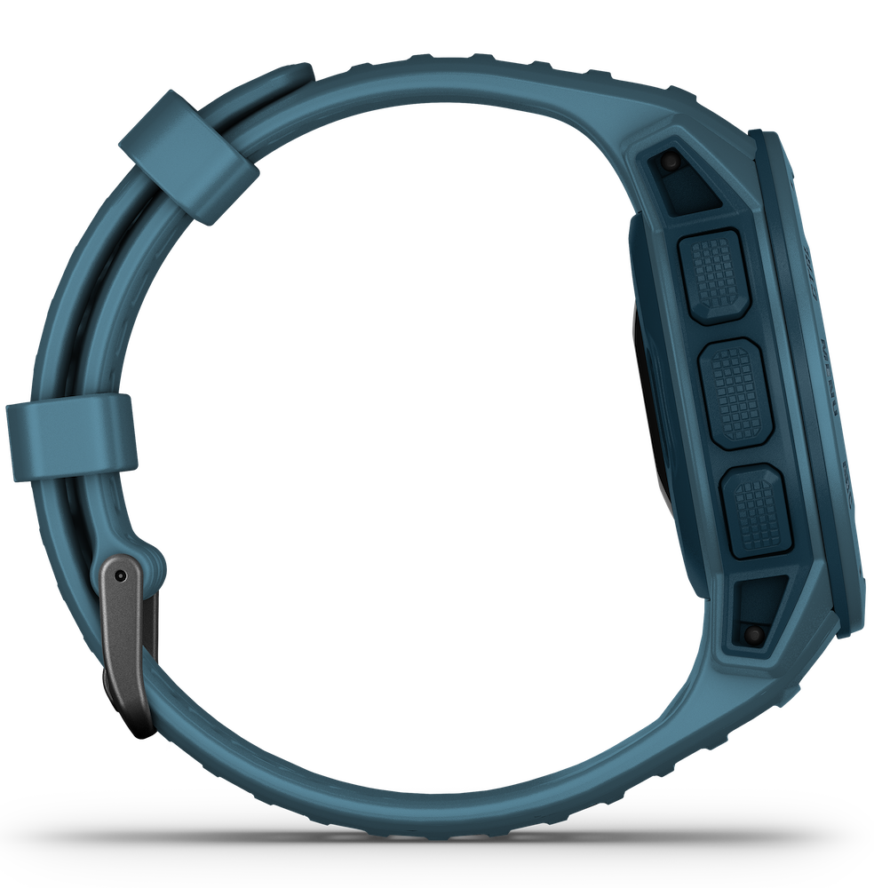 This striking Garmin Instinct Lakeside Blue watch keeps on top of things, so you don’t have to. Designed to be rugged, reliable and all-round useful, this highly reliable Garmin outdoor smartwatch has been built to the U.S military standard 810G for thermal, shock and water resistance to 100 metres. To achieve its military standard 810G certification, this Garmin Instinct GPS smartwatch has undergone an astonishing long list of tests including trials for temperature, humidity, freezing rain, ballistic shock, acceleration, contamination and vibration.