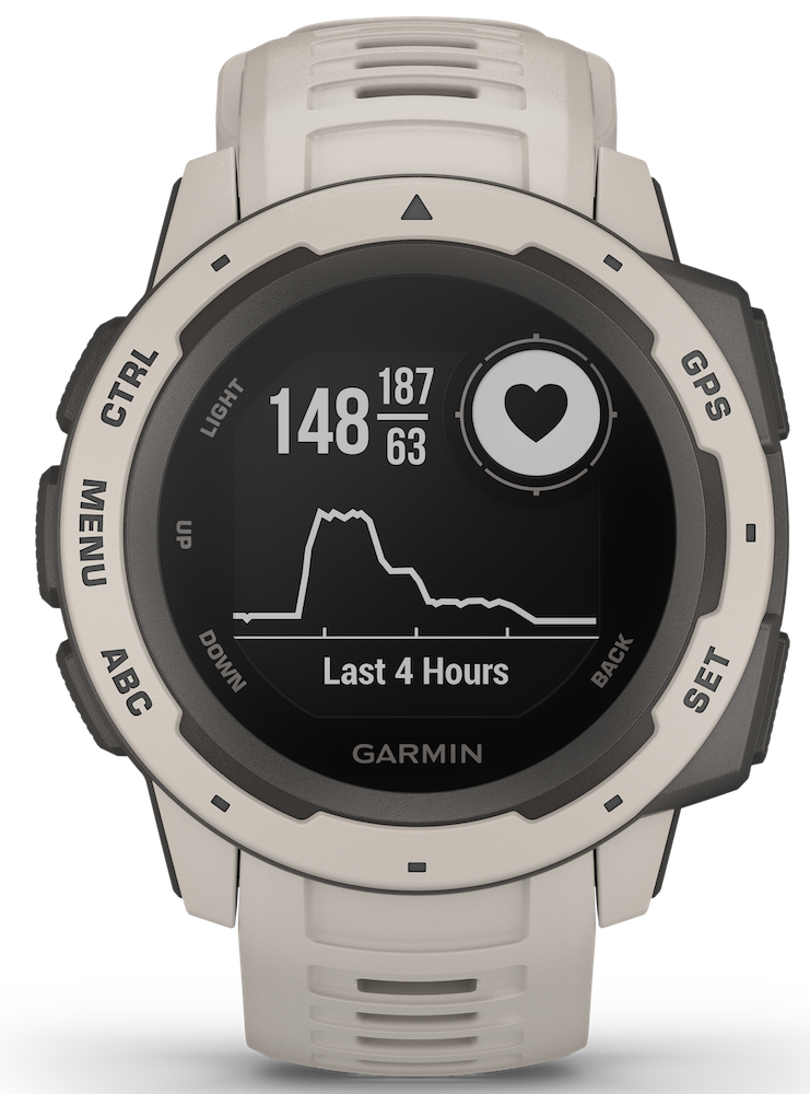 This striking Garmin Instinct Tundra watch keeps on top of things, so you don’t have to. Designed to be rugged, reliable and all-round useful, this Garmin outdoor smartwatch has been built to the U.S military standard 810G for thermal, shock and water resistance of 100 metres. To achieve its military standard 810G certification, this Garmin Instinct smartwatch has undergone an astonishing long list of tests including trials for temperature, humidity, freezing rain, ballistic shock, acceleration, contamination and vibration.