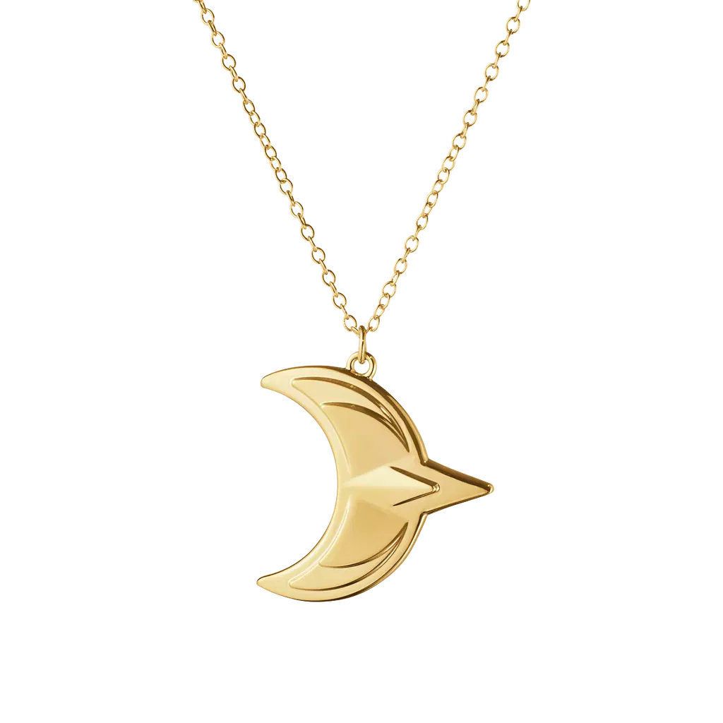 This crescent moon-shaped ornament is the design of long-time Georg Jensen collaborator Sanne Lund Traberg and is part of the night sky-inspired 2024 Christmas Collectibles. The gleaming, gold-plated ornament hangs from a delicate chain, adding a touch of decorative sparkle to any festive setting.