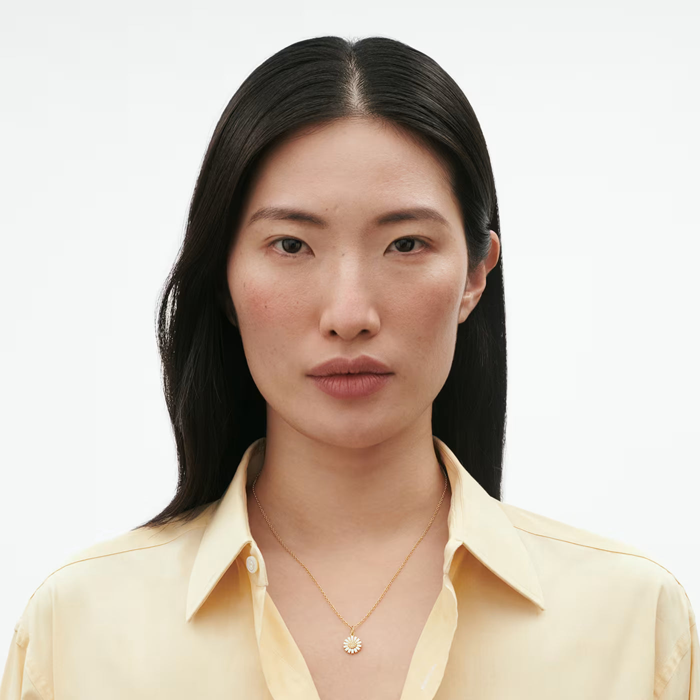 The Georg Jensen Daisy Necklace, lavishly plated in 18ct gold, combines exquisite craftsmanship with luxurious materials for a truly refined accessory. Featuring delicate white enamel petals that capture the purity and freshness of the daisy motif, this necklace is elevated by meticulously set diamonds that add subtle brilliance and sophistication. Crafted with a keen eye for detail, the piece balances elegance and modernity, making it suitable for both special occasions and everyday wear. Its lightweight design ensures comfort, while the secure clasp guarantees reliability. This necklace embodies Georg Jensen’s heritage of blending artistry with timeless luxury.